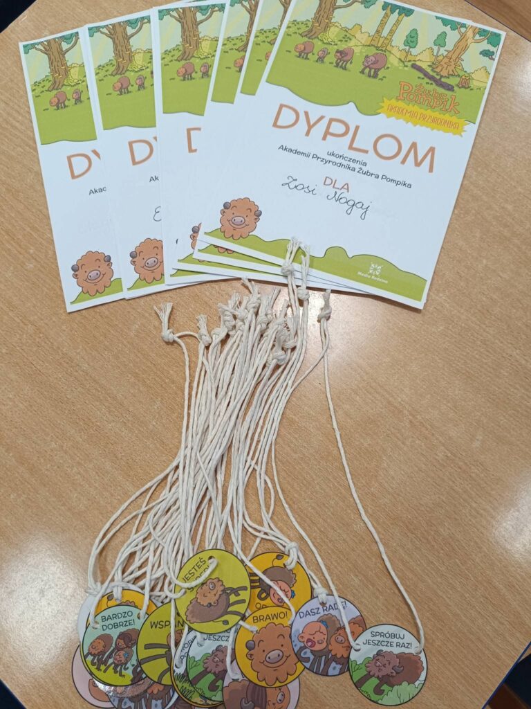 Nasze przedszkole znalazło się w gronie 20 wyróżnionych placówek w ramach Akademii Przyrodnika Żubra Pompika. Zostaliśmy docenieni za kreatywność i pomysłowość – dzieci otrzymały nagrody w postaci książek oraz naklejek. Realizując zadania przedszkolaki uczyły się współpracy, samodzielnego poszukiwania i odkrywania a przygody Żubra Pompika dostarczyły im wiele radości.