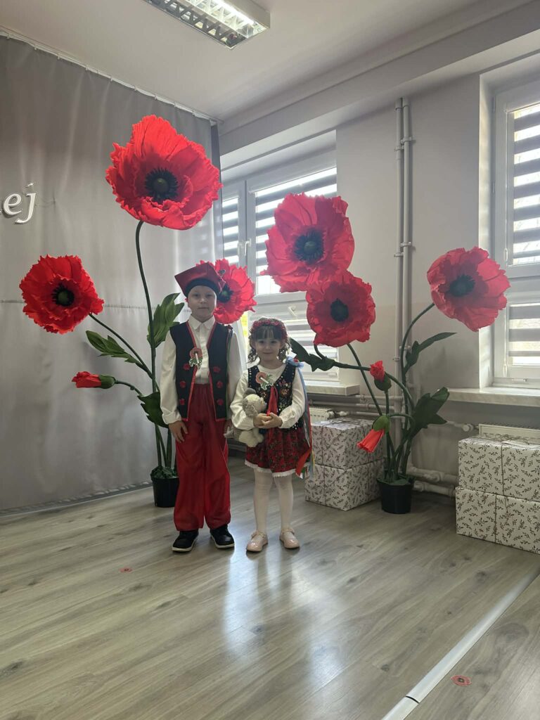Nasze przedszkole reprezentowali Marcelina Szuba, która zaprezentowała wiersz pt. „Sposób na laleczkę”, oraz Samuel Wrona, wykonując piosenkę „Laboga, dziewuszki”. Dzieci wystąpiły wspaniale, wykazując się dużym zaangażowaniem i odwagą sceniczną.