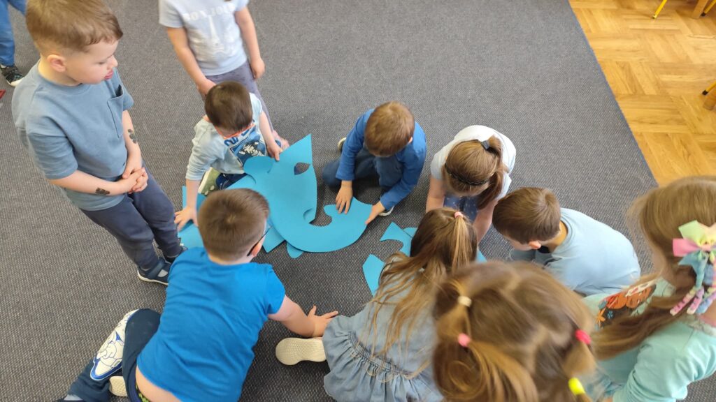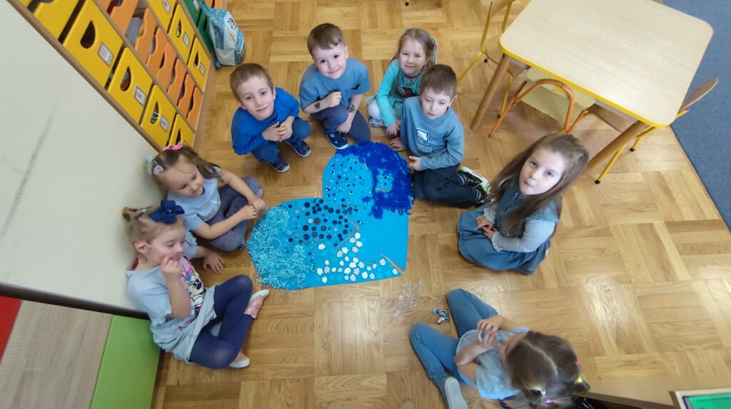 Podczas zajęć wykorzystano różnorodne formy aktywności – rozmowy, zabawy integracyjne, oglądanie materiałów edukacyjnych oraz prace plastyczne związane z kolorem niebieskim i symbolem puzzla. Przedszkolaki uczyły się, że różnorodność jest czymś naturalnym i pięknym, a każdy zasługuje na szacunek, zrozumienie i przyjaźń.