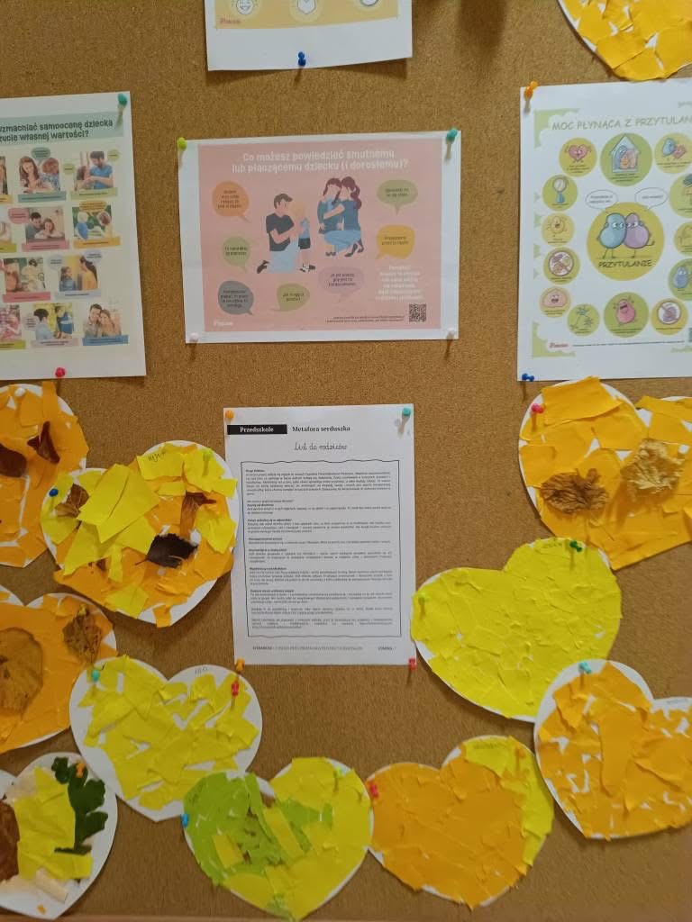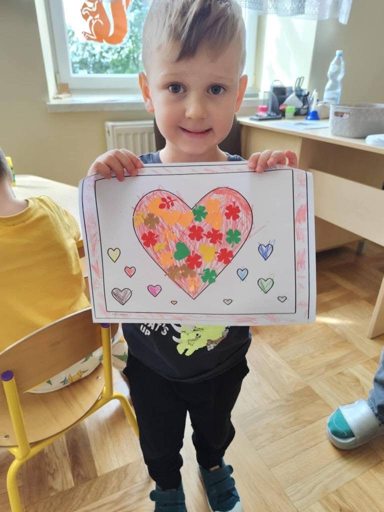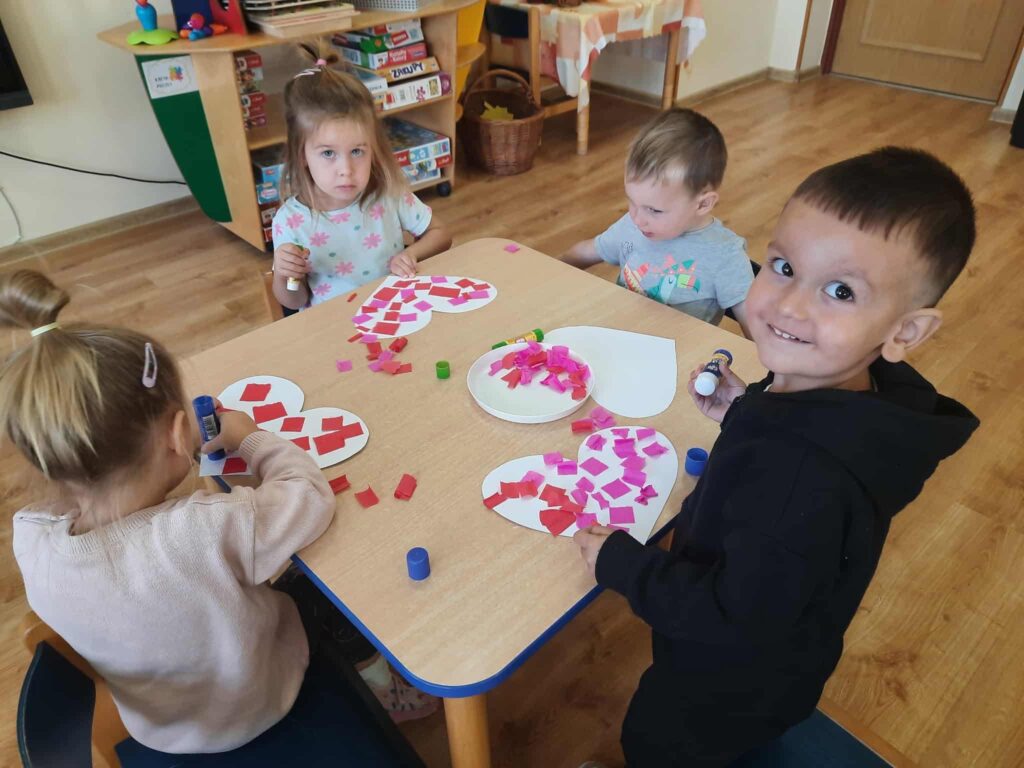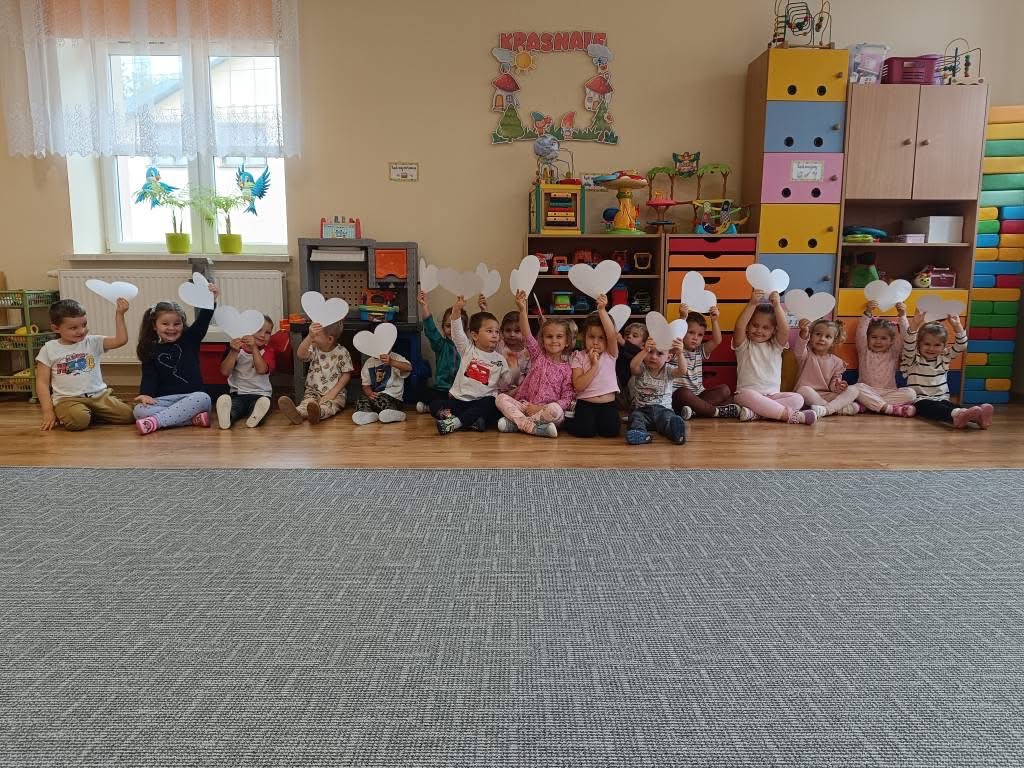 W ramach zajęć plastycznych dzieci wykonały piękne prace w kształcie serc, które ozdobiły przedszkole i stały się symbolem wspólnoty.